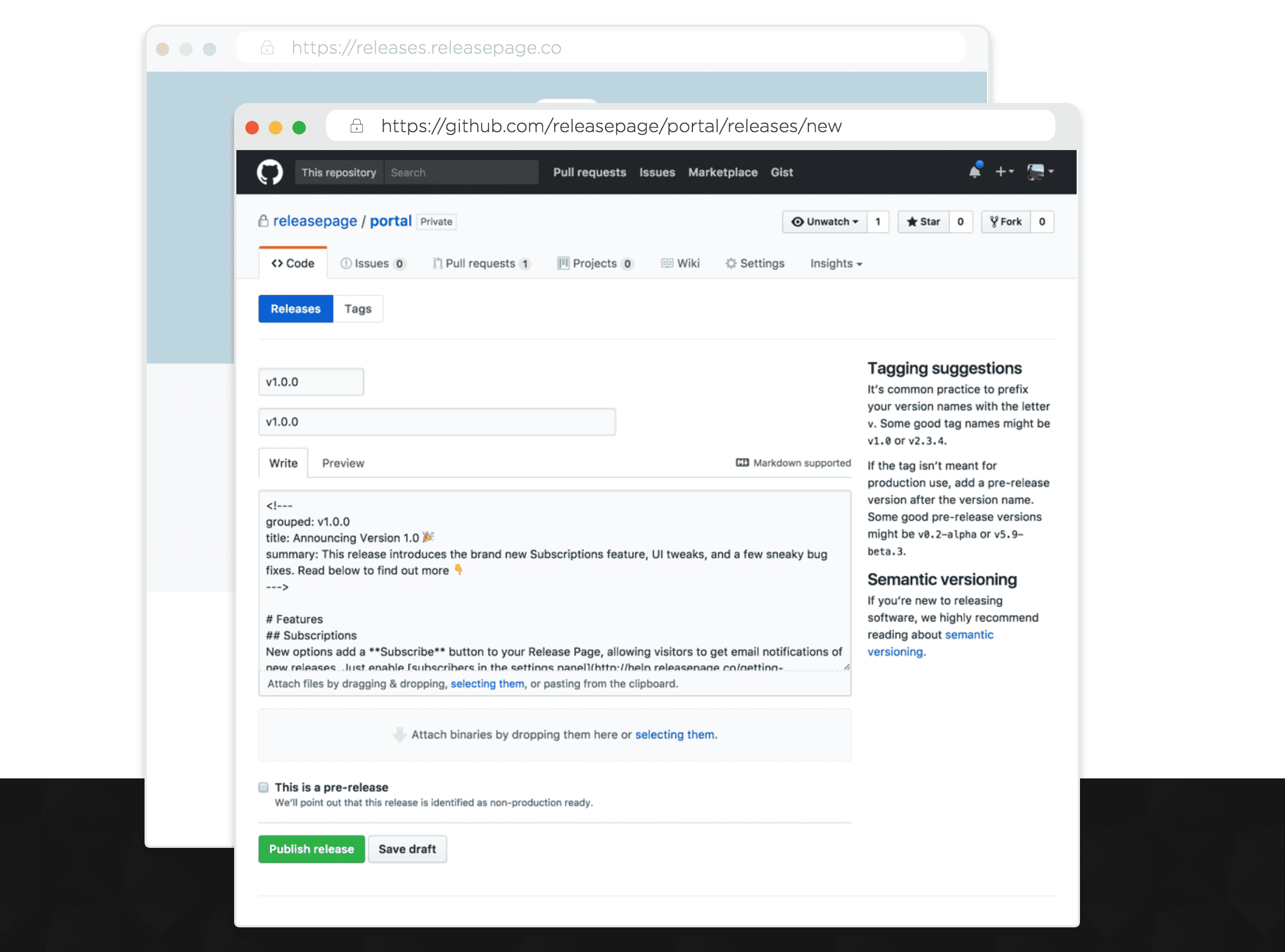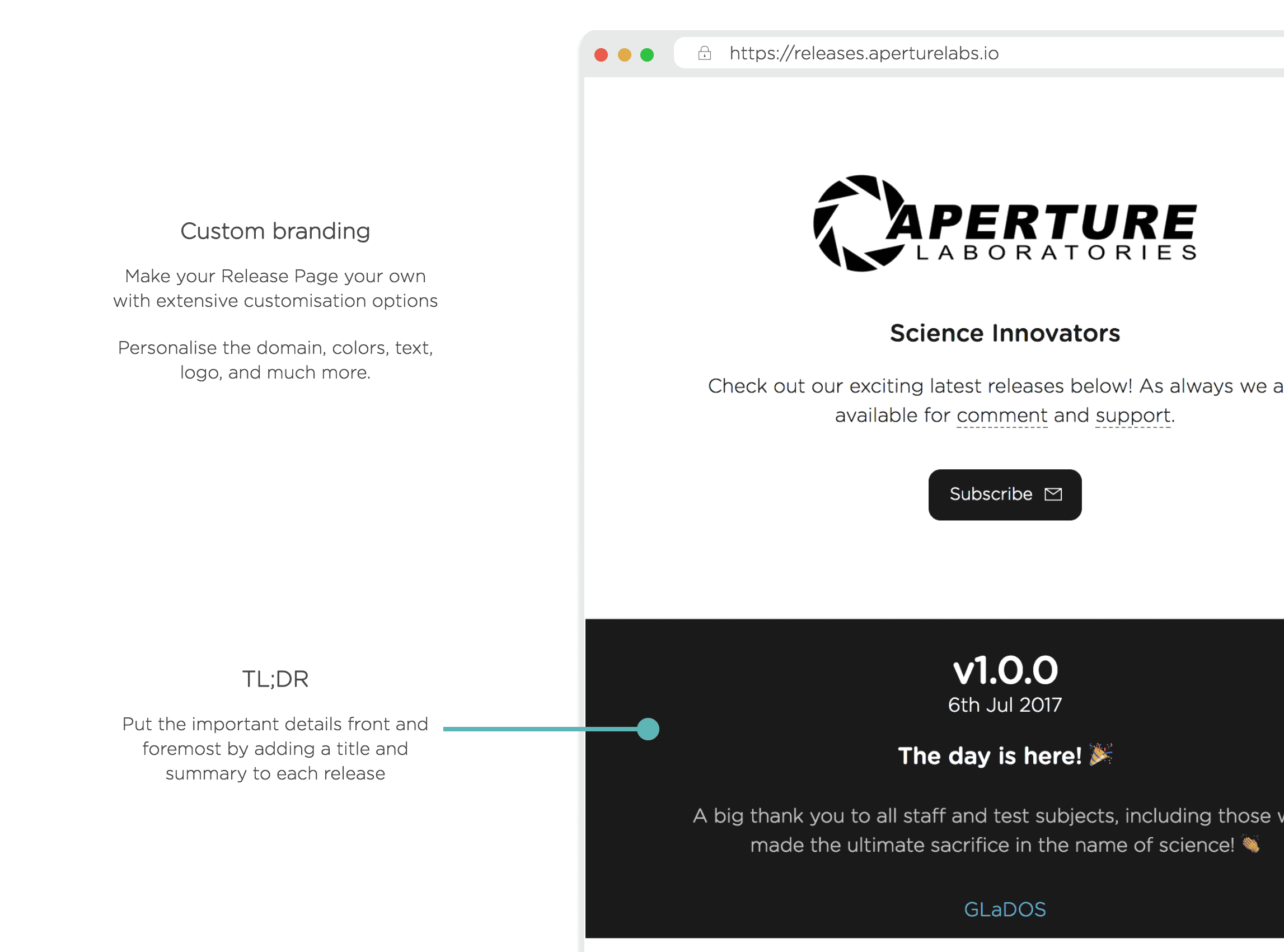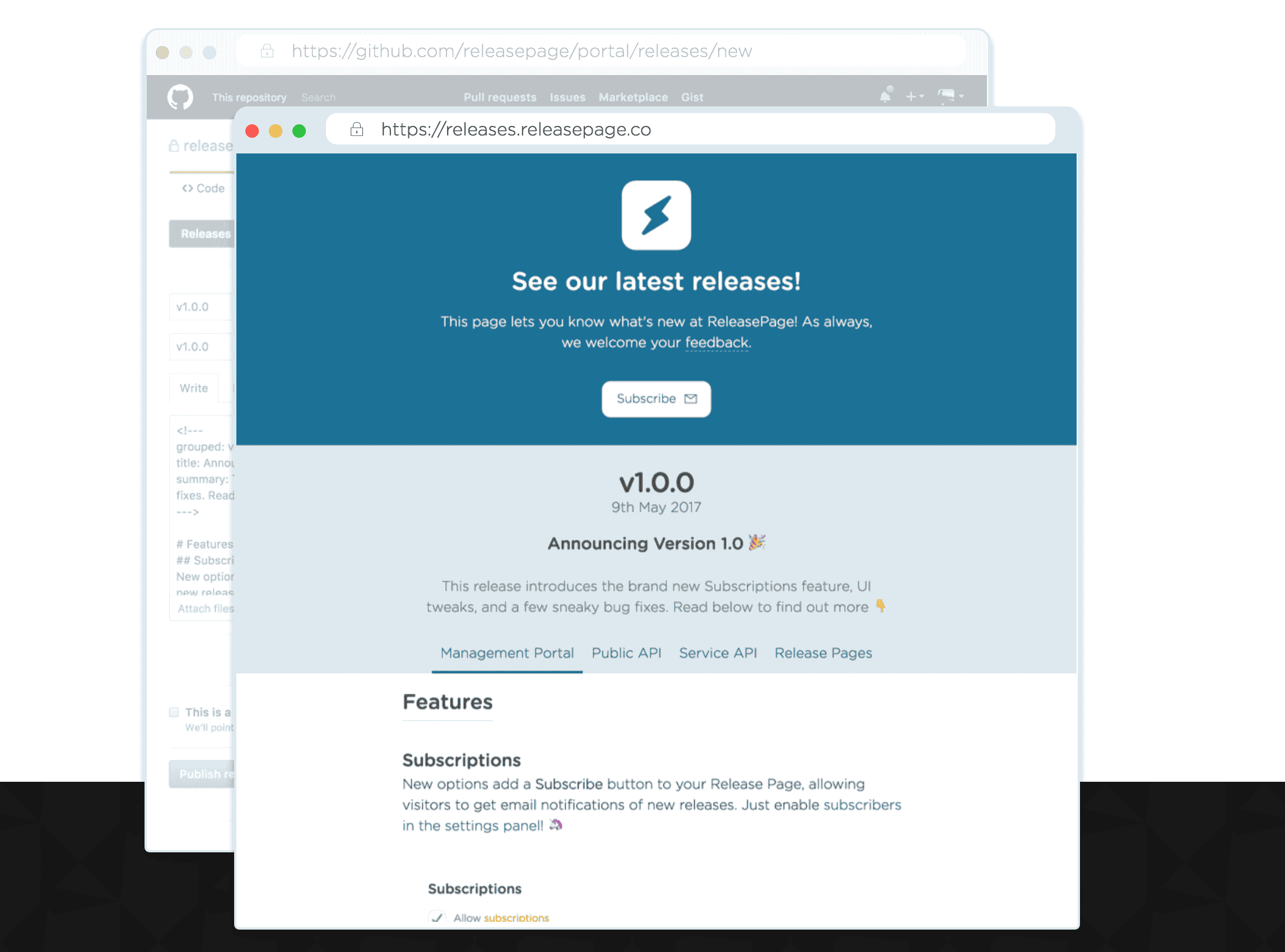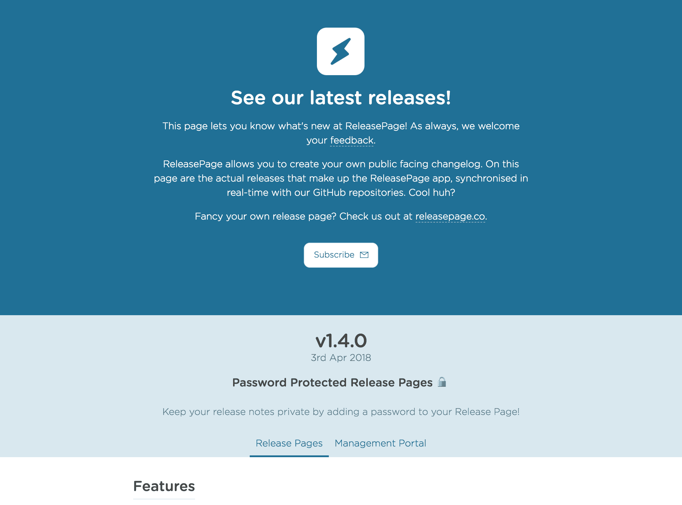 ReleasePage is one of our passion projects which provides an easier way for projects to communicate new software releases with their users. We architected, designed, and built a platform a for users to create branded, totally customised, beautiful web pages for their software release notes.